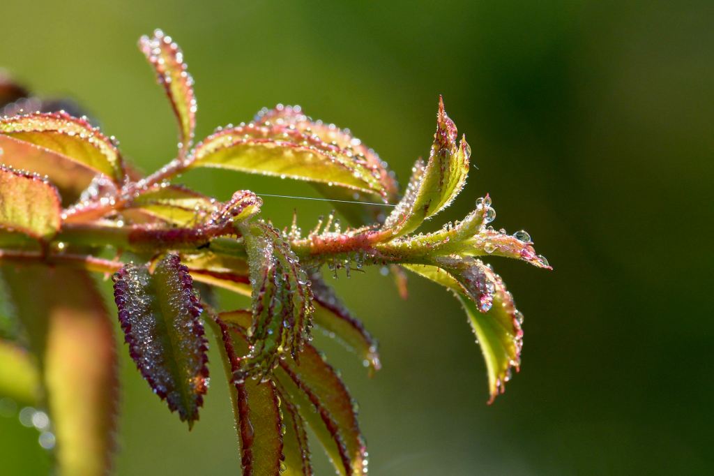 The photo above is from the wetlands, and it’s backlit cattail leaves. The one below is from the same place, and it’s budding leaves from a wild rose bush.